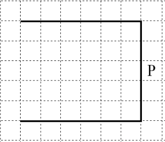 На бесконечном поле имеются две одинаковые горизонтальные стены и одна вертикальная, соединяющая правые концы стен. Длины стен неизвестны. Робот находится в одной из клеток, расположенных правее вертикальной стены, рядом со стеной.