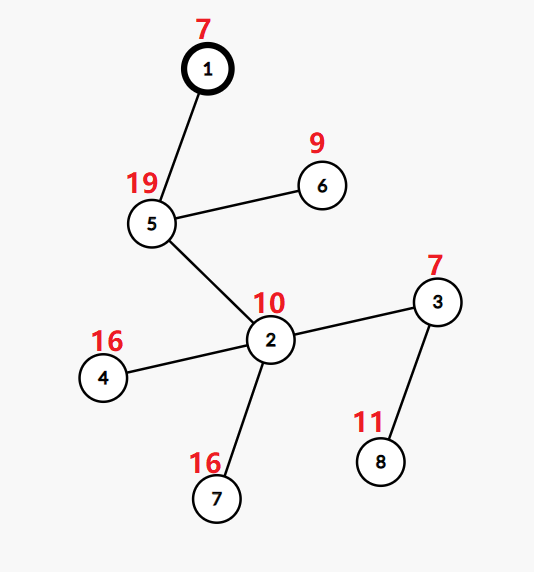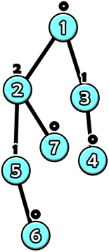 Во второй содержится \(n - 1\) целое число — \(p_2, p_3, \ldots, p_n\) (\(1 \le p_i < i\)); \(p_i\) обозначает, что города \(p_i\) и \(i\) соединены дорогой.
