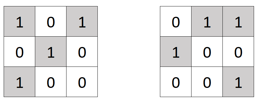 Первая строка содержит два целых числа \(n\) и \(m\) (\(1 \le n, m \le 12\)) — количество пар, которые первый участник передал второму и наоборот.